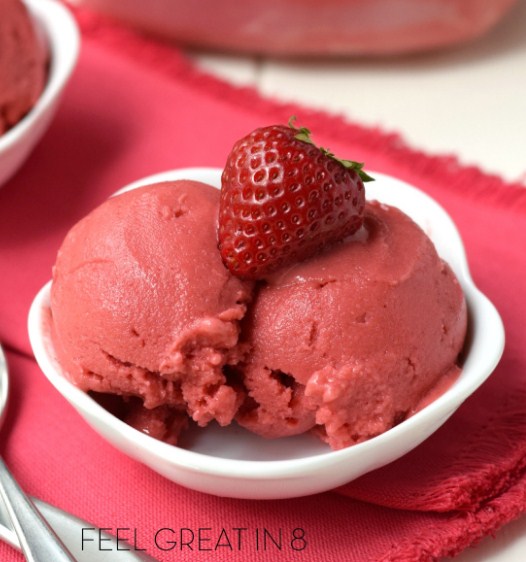 - If you use frozen strawberries you can scoop and enjoy immediately. If you use fresh strawberries, add extra liquid, or if you just want a more solid consistency, pour into a container with a lid and freeze until desired consistency is reached. Then just scoop and enjoy!